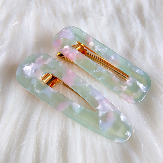Our acetate hair clips are more than just accessories; they're a commitment to sustainability and style. Crafted from cellulose acetate derived from plant-based pulp, these clips embrace eco-conscious design without compromising on elegance. Each clip is a testament to the beauty of nature, offering a lustrous finish and a durable structure that mirrors the sophistication of traditional materials while minimising environmental impact. By choosing these clips, you're not just enhancing your style; you're contributing to a more sustainable future, one adorned with chic, eco-friendly accessories.