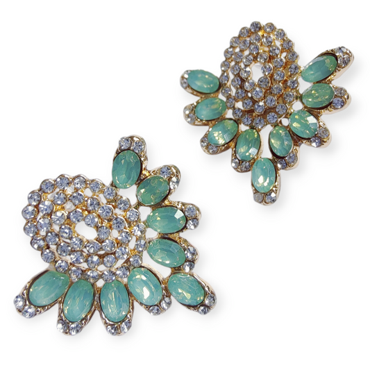 Myra Blue Green Diamante Statement Earrings