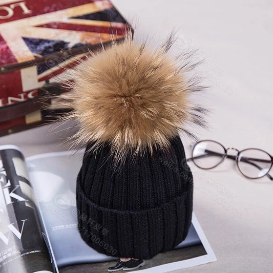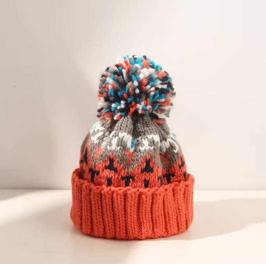 Fluffy Cable Knit Pom Pom Hat in Burgundy