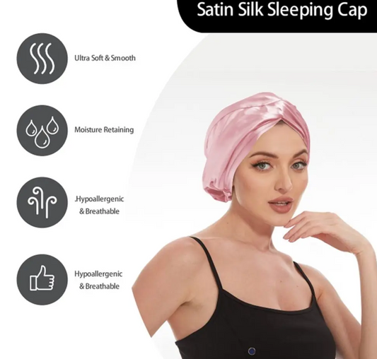 Double-layer Pink Satin Sleep Cap Soft Adjustable Elastic Hair Wrap, Satin Bonnet