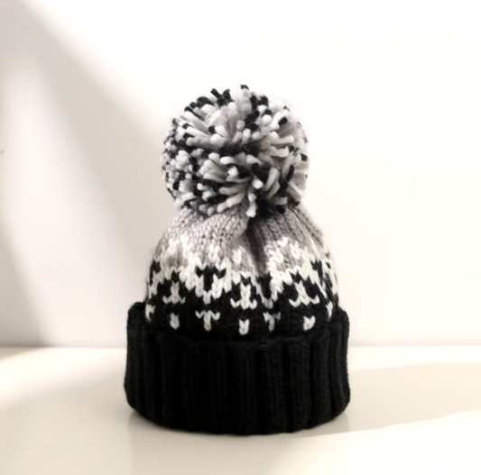 Fluffy Cable Knit Pom Pom Hat in Grey