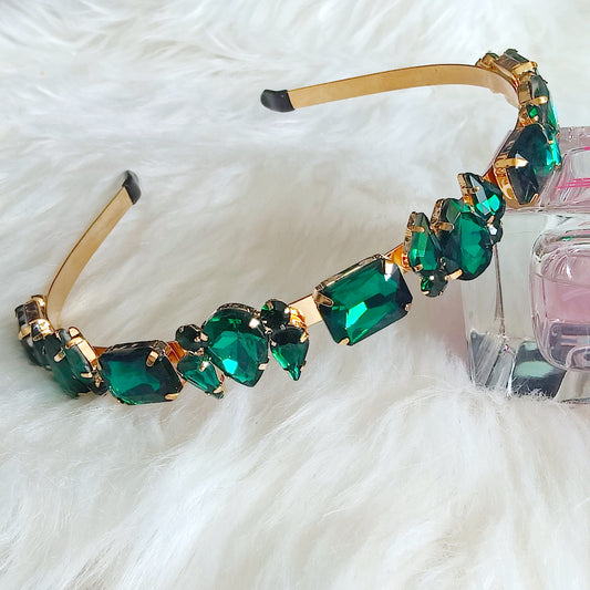 Rosa Crystal Embellished Hairband in Forest Green