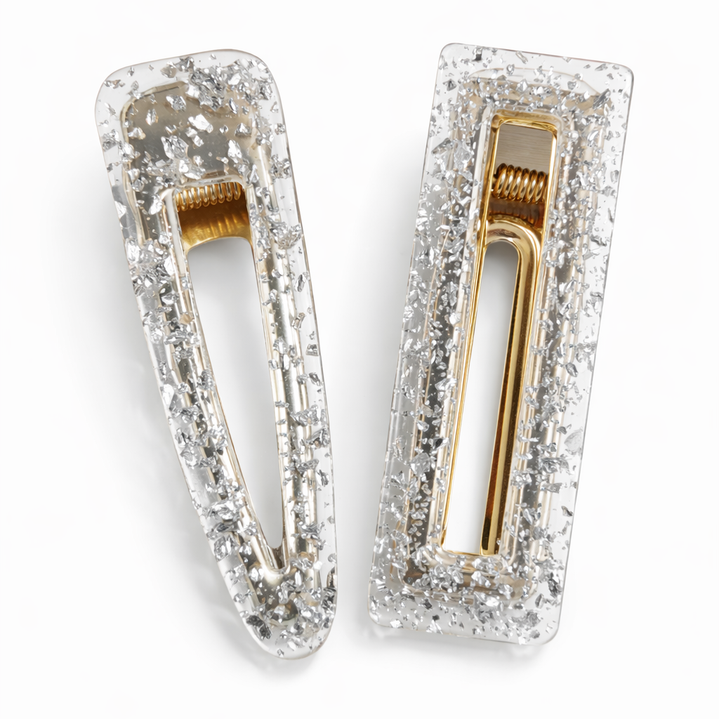 With their versatile design, our speckled silver hair clips can complement a wide range of hairstyles and occasions. From adding a touch of elegance to a simple ponytail to accentuating an updo, these clips effortlessly enhance your overall ensemble. They are equally suitable for everyday wear or special events, allowing you to effortlessly transition from casual to formal occasions with a touch of timeless flair.